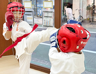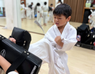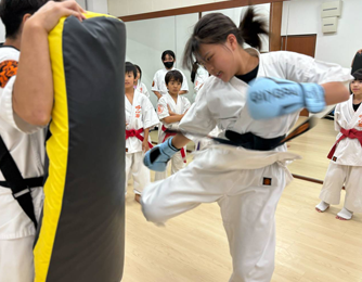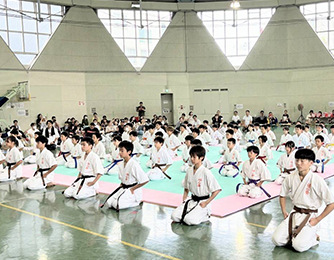 まずは相手の目を見て挨拶をすること、履物を揃える、道具をきれいに準備することや、大きな声で返事ができるように指導いたします。稽古では片足立ちやラダートレーニングなどの基礎体力づくりや、基本動作を中心に褒めて伸ばして楽しく稽古を頑張ることを目指していきます。